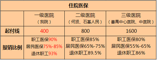 如在一级医院(广州南粤医院)住院,报销的费用为: