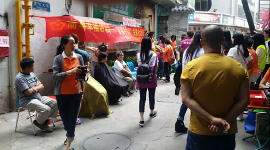 义工队受到街坊们的欢迎,很多街坊前来接受义剪、义修、义诊服务