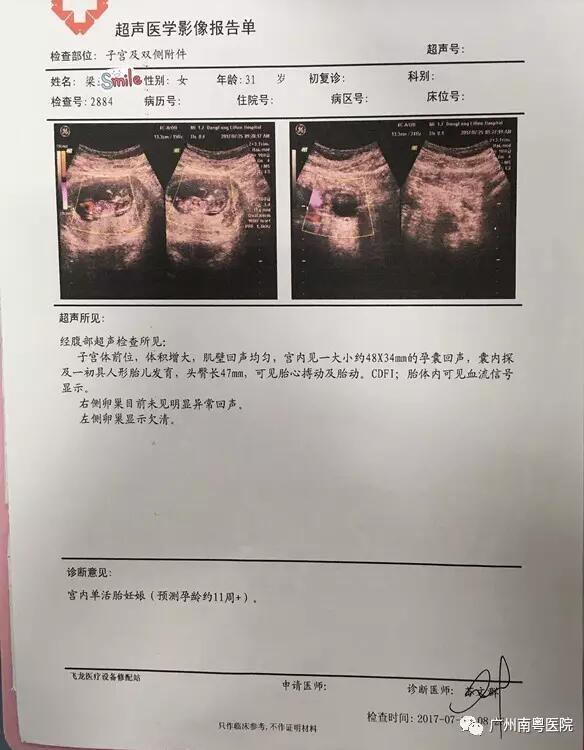 【治疗过程】林女士于2016年11月18日到南粤医院求诊,经过任小彦主任全面检查,林女士被确诊为双侧输卵管不通引发的不孕症。结合病情,任主任决定采用宫腹联合手术的治疗方式,该治疗方案为林女士疏通了输卵管,术后,林女士一直在任主任的指导下调理身体。同年12月进行通水后,林女士自行试孕3~4月没受孕,经任主任进一步检查发现,林女士排卵有障碍,2017年5月,任主任为林女士进行药物促排卵治疗,监测卵泡,两个月后林女士成功怀孕并于7月4日到南粤医院报喜。